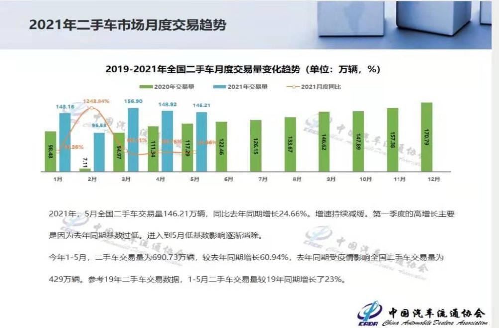 据公安部数据统计,截止到2021年6月,我国机动车保有量达3.84亿辆,在如此大的体量面前,二手车市场必然会迎来一波新的发展。事实也确实如此,据中国汽车流通协会的数据,2020年受疫情影响我国二手车交易量为1431.14万辆,今年1—5月全国二手车市场累计交易量更是到达了690.73万辆,同比增长60.94%。
