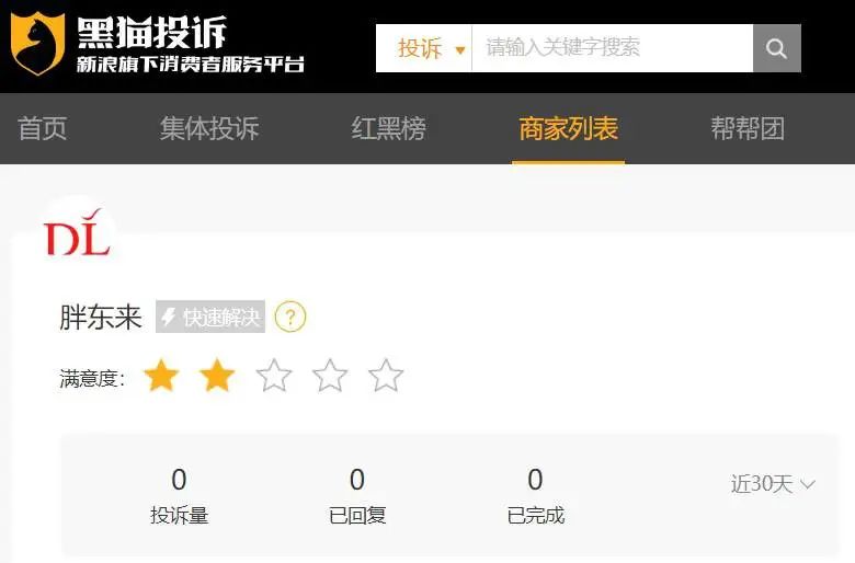 再对比一下胖东来,最近30天投诉量为0!累计投诉也仅42条。