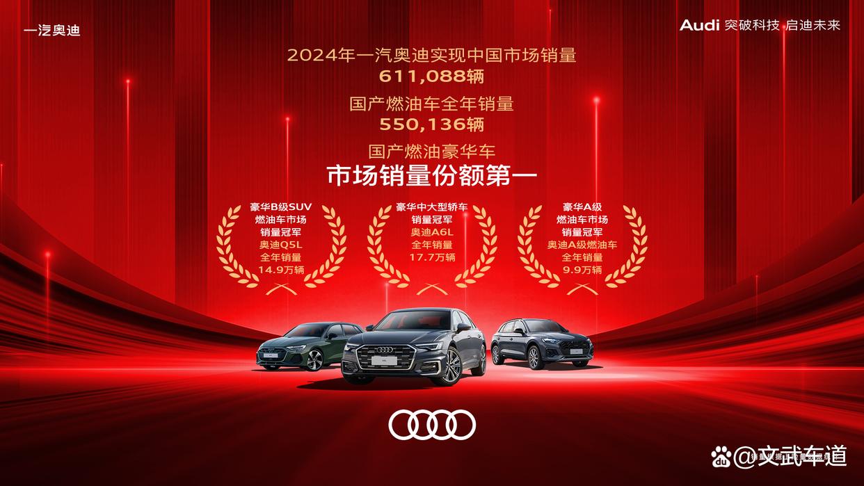 不过,在这样的销量成绩面前,一汽奥迪却还能强行给自己扣个“销量冠军”的“帽子”。在一汽奥迪官方发布的销量海报中显示:“全年国产燃油车销量550136辆,国产燃油豪华车市场销量份额第一”,正所谓是“只要定语足够多怎么样都能成冠军”。