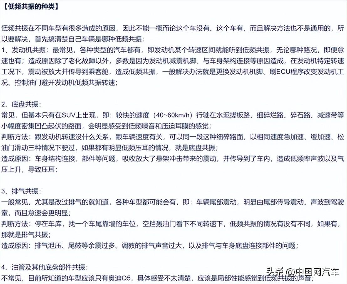 记者通过查询资料了解到汽车共振确实有多种原因,且引起共振的具体部位也有所不同,如果要解决该问题,需要检测确认该车属于哪种汽车共振,进而对症下药。