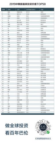哪些公司进入最具投资价值的中概股TOP50