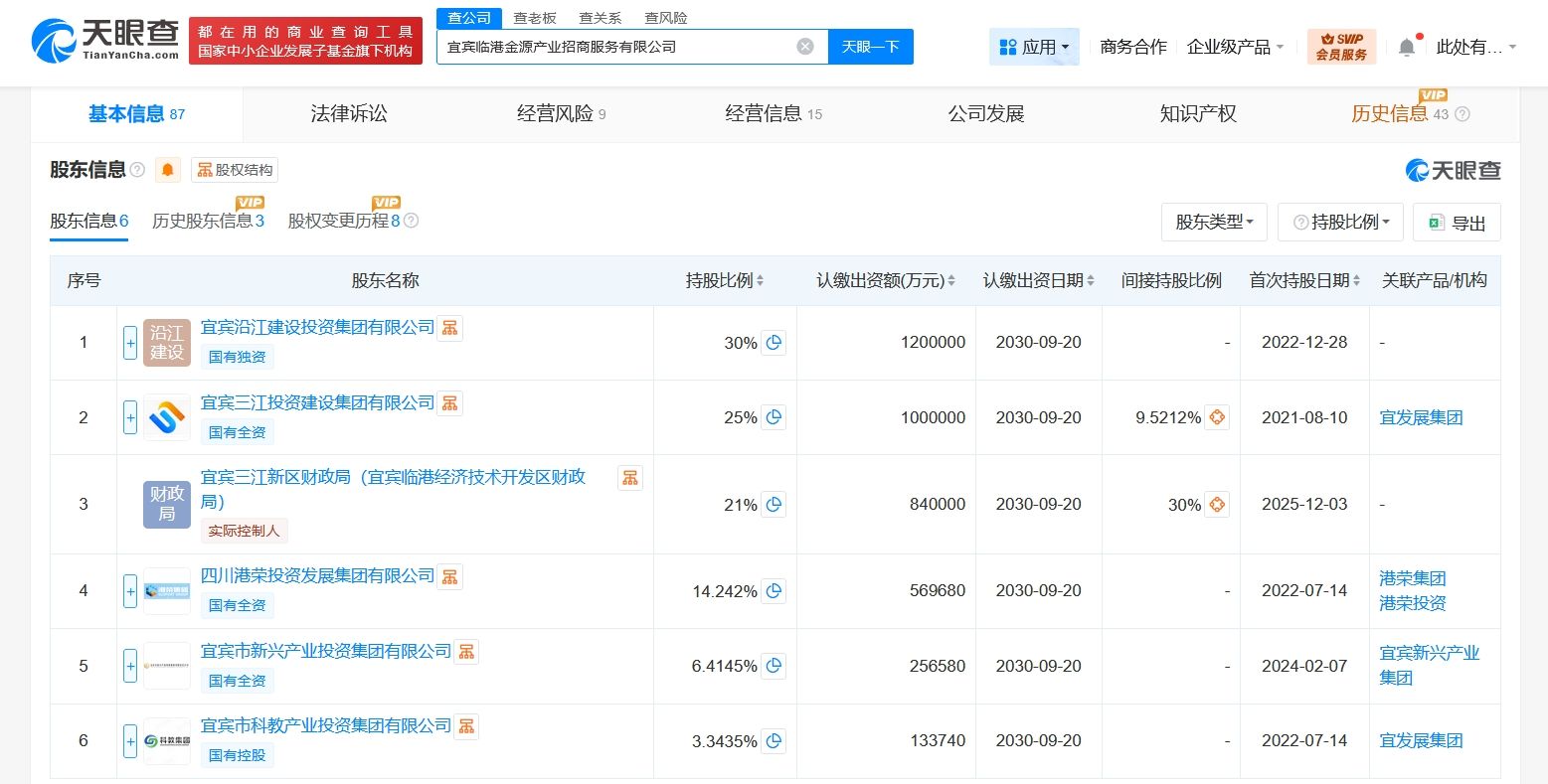 该公司成立于2020年8月,法定代表人为谢军,经营范围为招商信息咨询、社会经济咨询、市场调研咨询、企业管理咨询、投资与资产管理。股东信息显示,该公司由宜宾沿江建设投资集团有限公司、宜宾三江投资建设集团有限公司、宜宾三江新区财政局(宜宾临港经济技术开发区财政局)等共同持股。