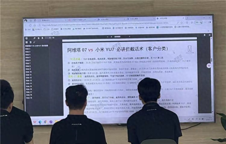 小米YU7上市后大受欢迎,仅18小时就斩获了24万锁单,不过受限于产能,小米YU7目前的交付周期普遍较长,标准版甚至需要等大约一年的时间,这也给了其他品牌“截胡”小米订单的机会。据ITheat热点科技报道,近日一份阿维塔07拦截小米YU7订单的话术培训照流出,其中第一行内容就是如何劝退YU7客户,内容为“YU7价格虚高,电池混装,辅助驾驶能力弱,安全无保障,全靠流量割韭菜,买YU7请三思”。