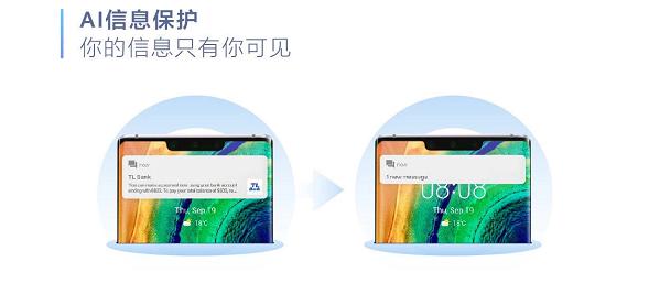 华为EMUI10加入了“AI隐私保护”功能,可以智能识别机主,当多张人脸出现在手机面前时,通知以及信息等会自动隐藏,更好地保护你的隐私。