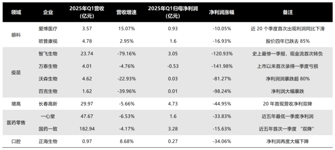 不仅仅是医美,2025年Q1从眼科到牙科再到疫苗,从医药零售到生长激素再到口腔,消费医疗各个细分领域的龙头纷纷交出史上最差“成绩单”,整个消费医疗颇有集体崩盘之势。