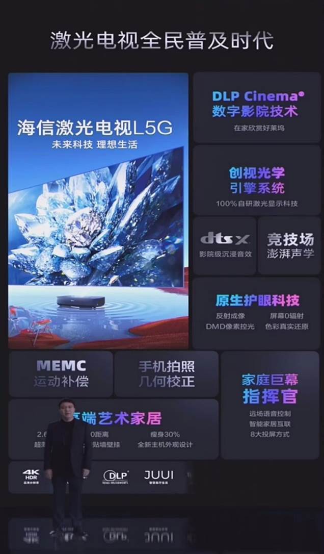据悉,2018年5月上市的激光电视L5系,凭借卓越性能及价格优势,登顶2019年度畅销榜TOP1,成为推动激光电视普及的先锋。此次L5G新品更体现了海信通过技术进步,实现价格让步,不断为用户创造更高价值的产品开发理念。