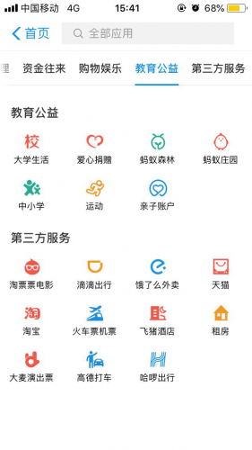 支付宝查四六级分数步骤如下:支付宝app首页-更多-教育公益-大学生活-四六级查分。