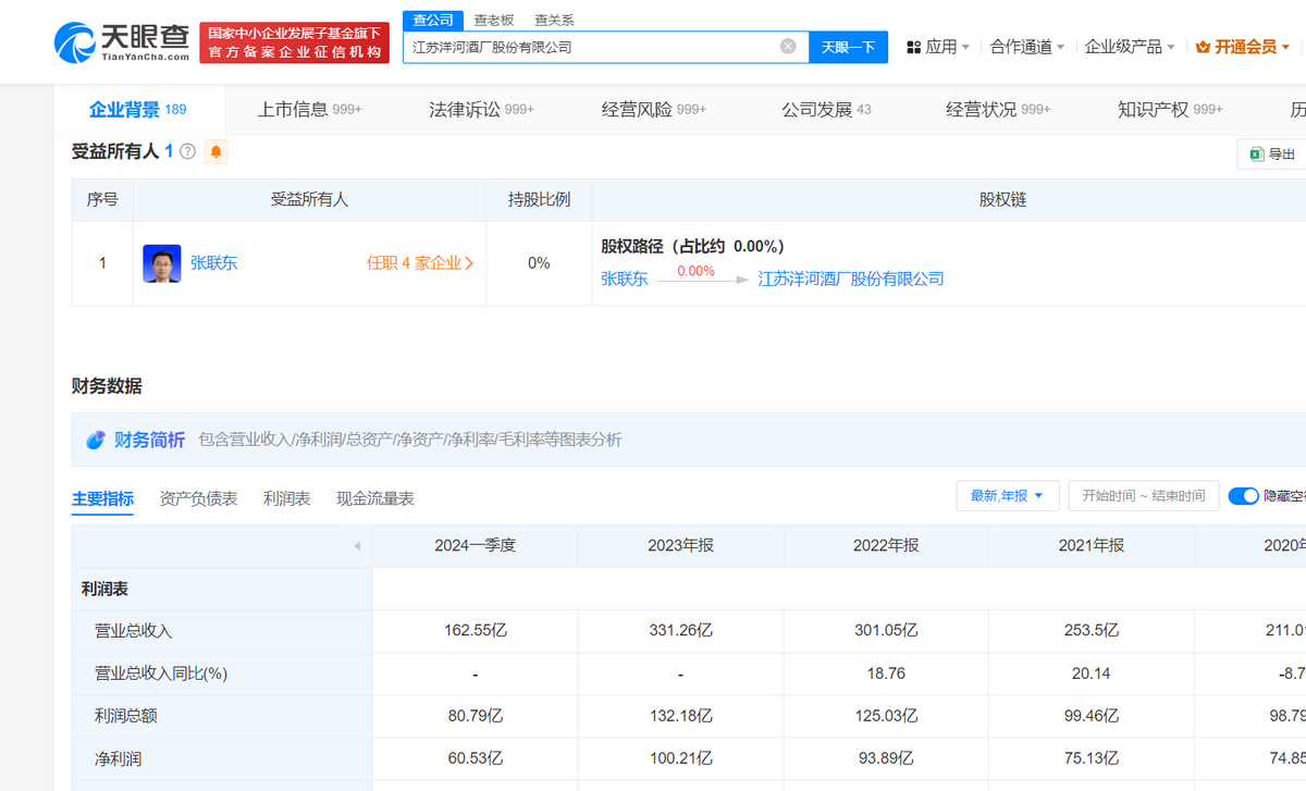 毕竟天眼查APP显示,今年一季度,洋河在合同负债指标下滑了16.62%的基础上,应收账款的指标却同比增长了232.08%。这本身就既道出了现在洋河在市场渠道方面的弱势地位,也在一定程度上暴露出了卖不动的业绩焦虑。