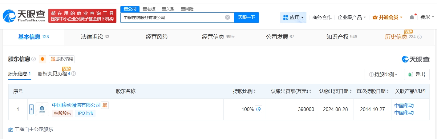 天眼查App显示,近日,中移在线服务有限公司发生工商变更,注册资本由35亿人民币增至39亿人民币,增幅约11%,同时吕艳军卸任监事。