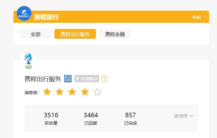 黑猫投诉平台显示,近30天内携程出行服务有3516条投诉,其中不包括携程金融。这意味着,关于携程出行服务平均每天有超过110条投诉。另外,在微博、小红书、雪球等多个平台,也有零星的用户投诉。
