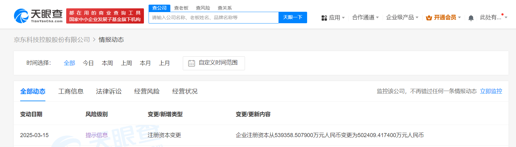 天眼查App显示,近日,京东科技控股股份有限公司发生工商变更,注册资本由约53.9亿人民币减至约50.2亿人民币。