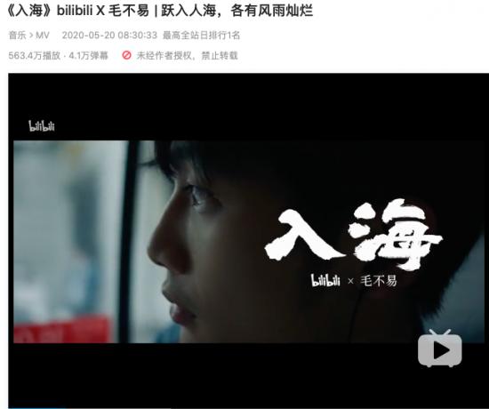 继《后浪》之后,B站联合毛不易,再次发布了宣传片《入海》。