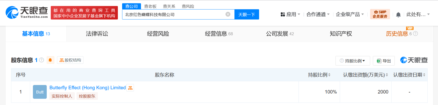 北京红色蝴蝶科技有限公司成立于2023年7月,经营范围含计算机系统服务、物联网应用服务、人工智能应用软件开发、信息技术咨询服务、专业设计服务、互联网销售等,由Butterfly Effect (Hong Kong) Limited全资持股。