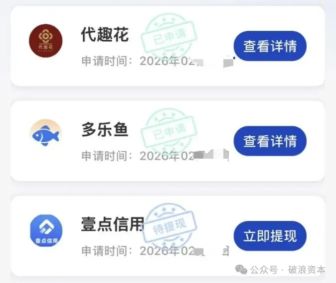 持牌小额贷款公司与支付机构的参与,让这条违规链条更加隐蔽。破浪资本发现,易嘉钱包内部分贷款由防城港市广发小额贷款有限公司、百色市七秒小额贷款有限责任公司等持牌机构发放,这些机构作为资金方,并未履行助贷新规要求的“综合融资成本告知义务”,对平台强制搭售旅游卡、收取砍头息的行为视而不见。