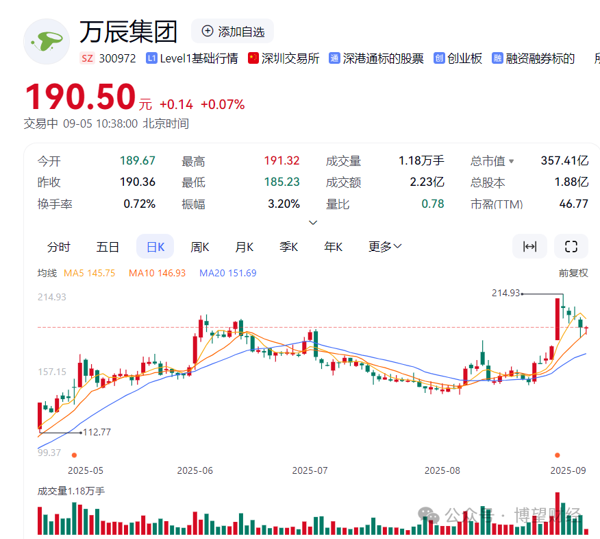 2025年3月,万辰集团公告称董事长王健坤被国家监察委员会留置并立案调查。虽称“所涉事项与公司无关”,但资本市场反应剧烈,股价强烈震荡,市值大幅缩水。