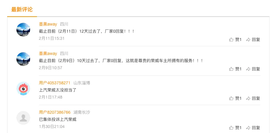 15位车主联合投诉!上汽荣威选择沉默汽车