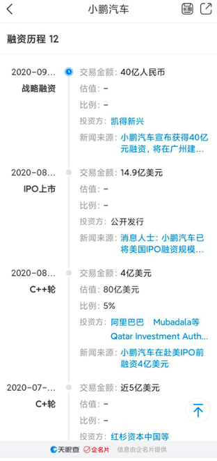 据天眼查APP显示,新一轮融资为小鹏汽车的第12轮融资。自今年7月份开始,小鹏汽车融资频繁,7、8、9三个月,除去IPO上市融资,还有3轮。“大鹏一日同风起,扶摇直上九万里。”小鹏融资十几轮,能趁着新融资在汽车行业“扶摇直上吗?”
