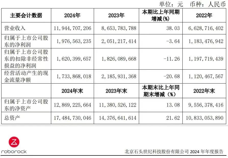 这场股价滑铁卢与石头科技最新披露的2024年财报有关。数据显示,公司全年营收同比增长38.03%至119.4亿元,然而,净利润却同比下滑3.64%至19.77亿元。在扫地机器人行业进入存量博弈的背景下,石头科技的营收增长已属不易。问题在于,利润的萎缩暴露了其成本控制与市场扩张之间的脆弱平衡,而这恰恰与特朗普关税的冲击不谋而合。
