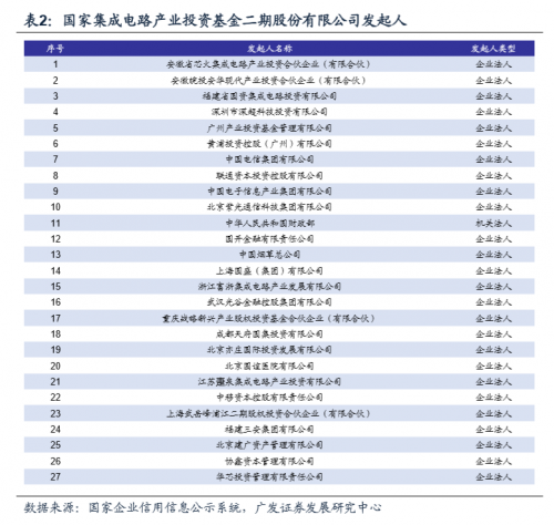 公开信息显示,大基金二期共有27位股东,在数量和募集金额方面均较一期有较大提升,资金来源包括国家机关部门、国家级资金、地方政府背景资金、央企资金、民企资金及其他投资资金等。