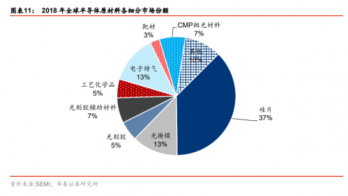 华泰证券指出,近年来,国内半导体晶圆厂的建设进程加快,晶圆厂建成之后,日常运行对半导体原材料的需求大幅增加。从目前国内产业发展现状来看,其差距远大于芯片设计、制造、封测等环节。产业发展进程甚至落后于半导体装备,国产化替代空间巨大。