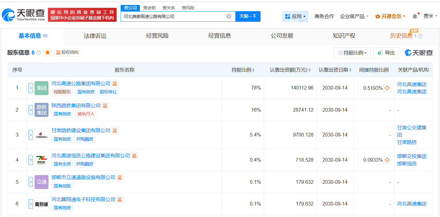 天眼查App显示,近日,河北唐廊高速公路有限公司成立,法定代表人为智韶宇,注册资本约17.96亿人民币,经营范围包括工程管理服务、税务服务、企业总部管理等。股东信息显示,该公司由河北高速公路集团有限公司、陕西路桥集团有限公司、甘肃路桥建设集团有限公司等共同持股。