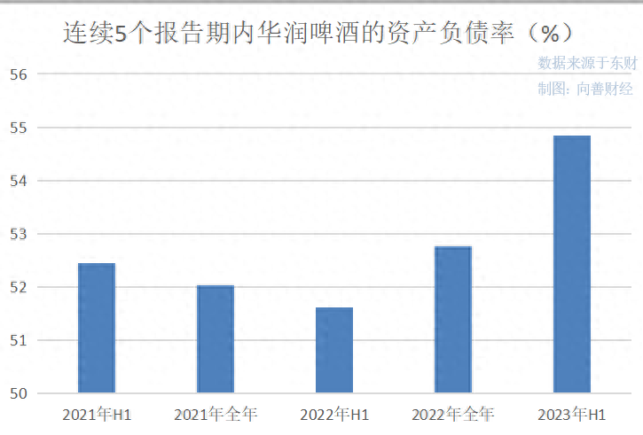 最终,华润啤酒的整体资产负债率增长至54.85%,远高于年初的52.76%和去年同期的51.62%。