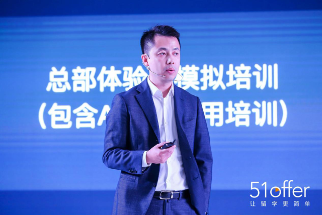 演讲过半,王影请出了51offer产品总监朱小江,朱小江就上下游产业链思考和破局解决方案做出分析,并介绍了 51offer即将推出的严选产品平台,该平台已经和AI智能选择系统匹配,系统在特定场景会将每一个对应的上下游产品推荐给学生,让学生了解每一个产品的优势,与此同时,顾问可以在旁边做阅读式陪伴,帮学生解决一些个性化的问题,让他能快速地决定为什么选择这个产品,应该选择哪个产品。