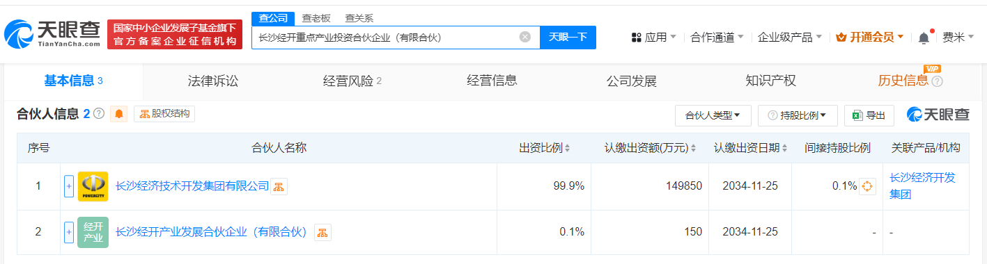 近日,长沙经开重点产业投资合伙企业(有限合伙)成立,执行事务合伙人为长沙经开产业发展合伙企业(有限合伙),出资额15亿人民币,经营范围为以自有资金从事投资活动等,由长沙经济技术开发集团有限公司、长沙经开产业发展合伙企业(有限合伙)共同出资。