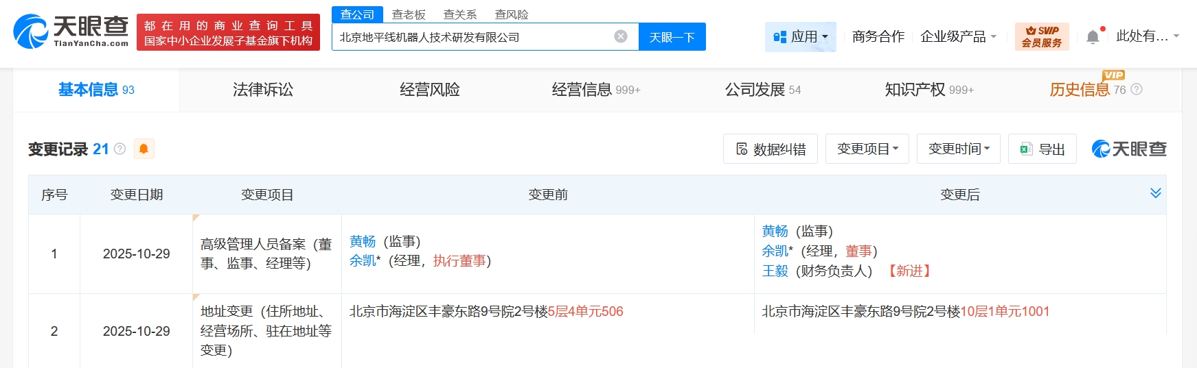 天眼查App显示,近日,北京地平线机器人技术研发有限公司发生工商变更,余凯由经理、执行董事变更为经理、董事,新增王毅为财务负责人。