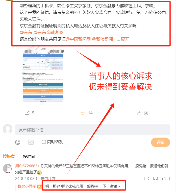 截至发稿前,受害人仍活跃在微博平台发帖求助,其表示京东金融从事发至今并未给出任何说法。面对外界的质疑,京东金融则采取“鸵鸟战术”,未作出正面回应。