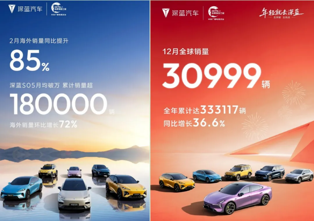 当长安启源高调公布2月销量18300辆、环比暴涨96.3%的亮眼成绩,比启源更早入场、手握长安集团技术、供应链、渠道三重王牌的深蓝汽车,却陷入了前所未有的尴尬境地。1 月交付24575辆车,官方只敢强调同比34%的增长,对环比大幅下滑的核心数据讳莫如深;2月更是彻底隐匿了国内销量,只拿海外销量同比提升85%的数字遮羞。