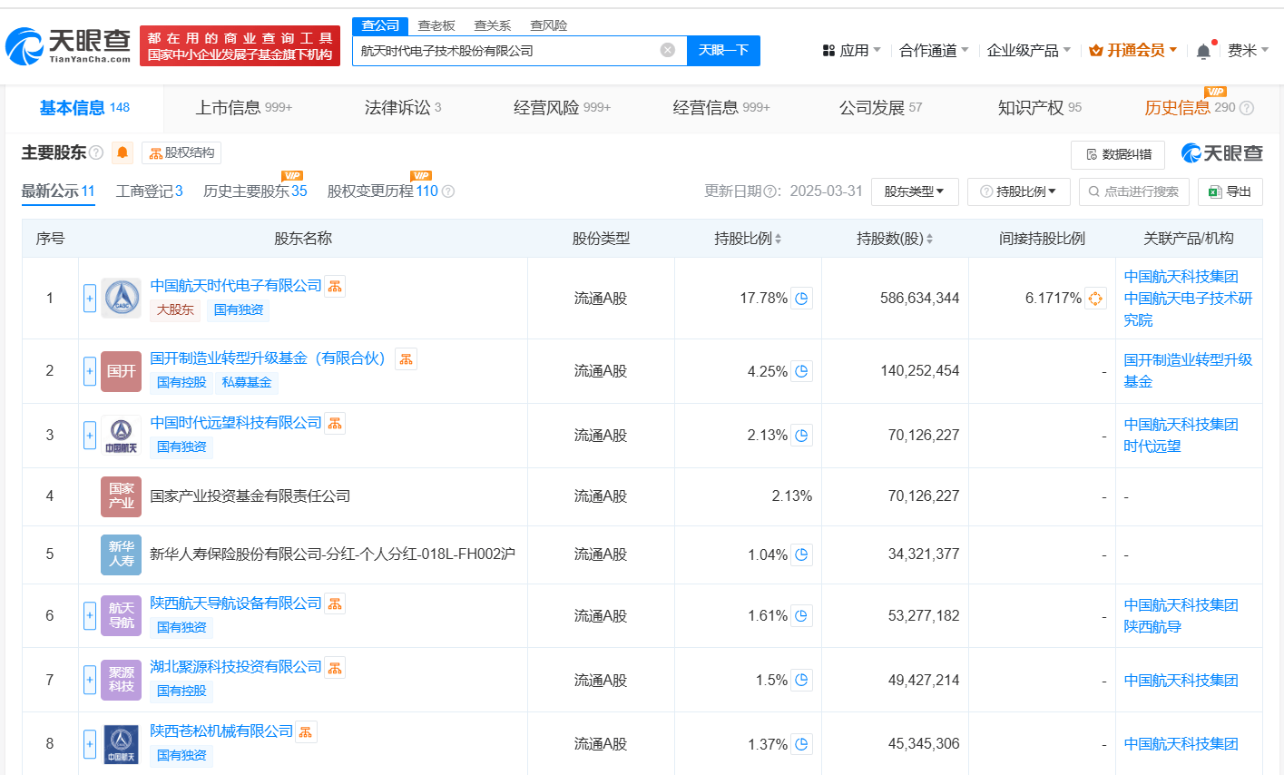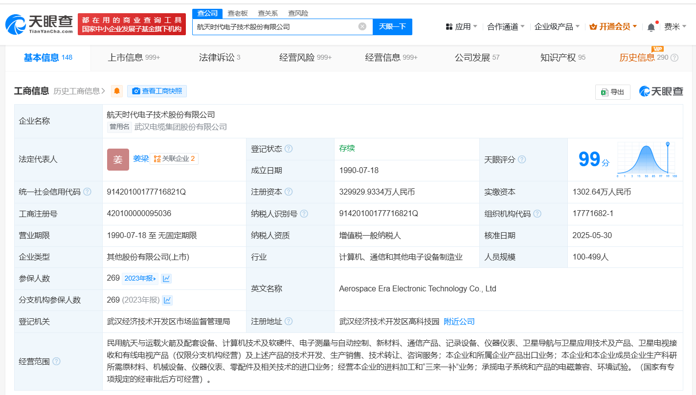 天眼查App显示,近日,航天电子(600879)发生工商变更,注册资本由约27.2亿人民币增至约33亿人民币,增幅约21%,同时部分高管发生变更。