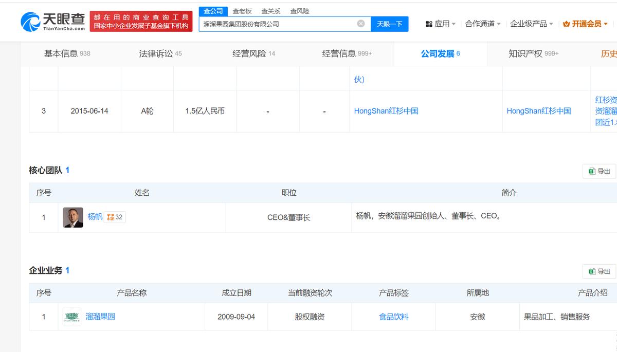 天眼查APP显示,溜溜果园的融资共有四轮: