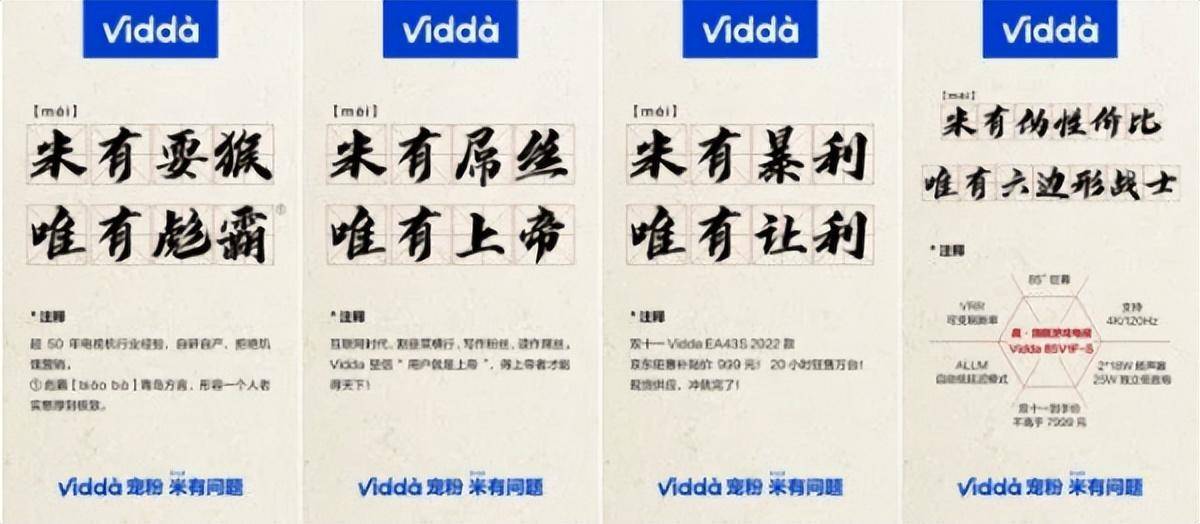 在营销模式上,海信也在逐步尝试社会化营销,虽然有点低俗,但这一定说明了海信高层对于子品牌的放权,这也使得Vidda品牌迅速出圈,包括线上品牌,销量和知名度均大幅度提高。