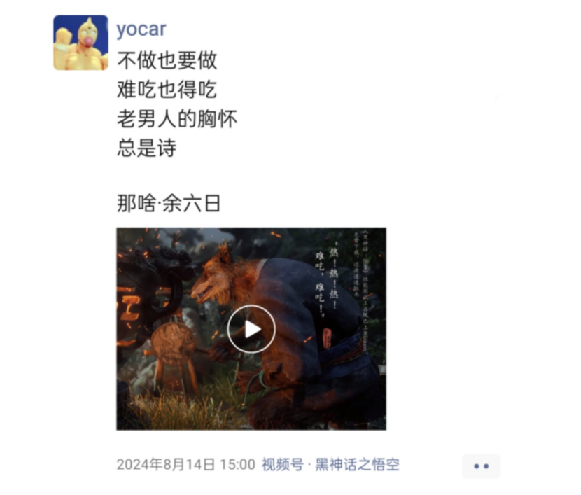 对于上线情况,研发团队或许是最紧张的。上线前六天,《黑神话:悟空》制作人冯骥还在朋友圈每日倒数,并附上了自己的打油诗。