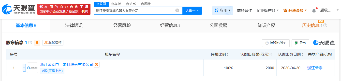 浙江荣泰成立智能机器人公司 注册资本2000万观点
