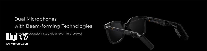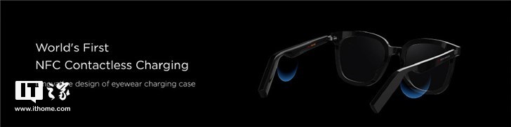 该眼镜的电子部分均在镜腿中,内置双麦克风,支持波束成形技术,可让通话噪音更小。该眼镜还搭载双半开扬声器,能够带来出色的听觉体验。同时该眼镜还带有一个充电袋,眼镜放进里面即可进行无线充电,并且是世界首款支持NFC无接触式充电的设备。