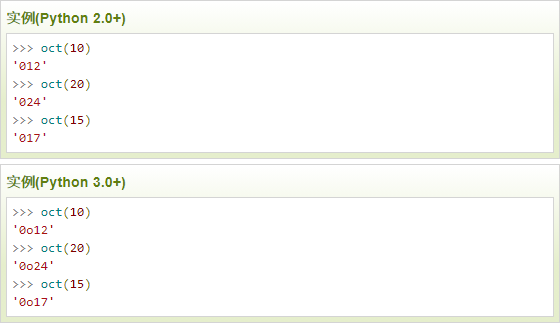 以下实例展示了 oct() 的使用方法: