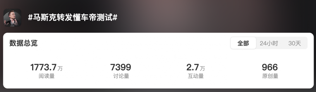 【TechWeb】7月25日消息,今日早间,“马斯克转发懂车帝测试”词条冲上微博热搜,引发热议。截至发稿,相关话题阅读量超过1773万。