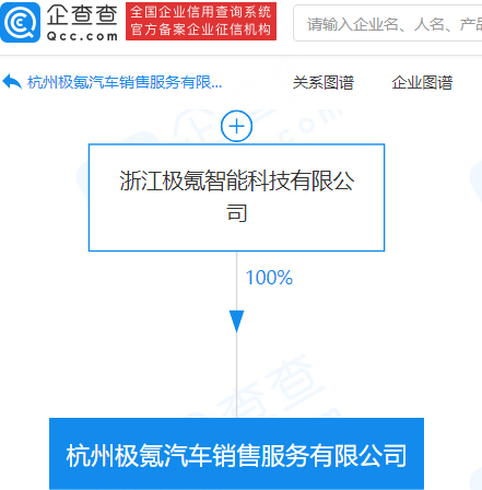 杭州极氪汽车销售服务有限公司成立,新能源汽车电附件销售,企查查股权穿透显示。