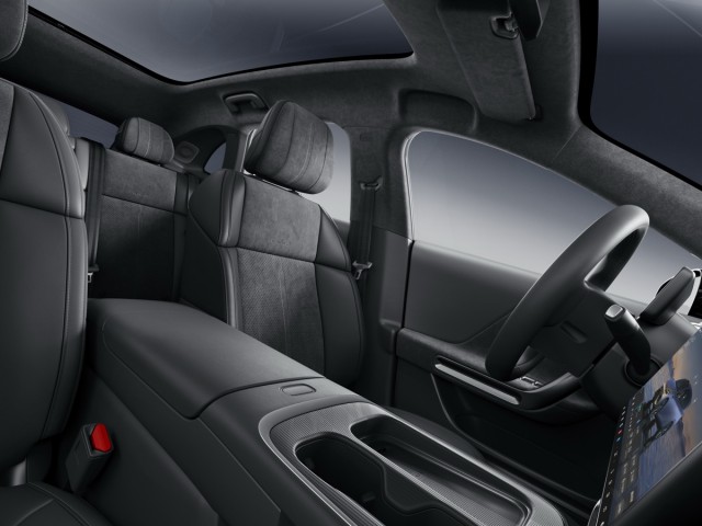 高配款车型将采用竞速灰主题,顶棚与座椅选用真皮+仿麂皮超纤绒材质,并压印赛道纹理与Lafa5专属字体,彰显运动格调。