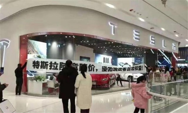 对于特斯拉的突然大幅降价,国内特斯拉车主显然很不满。有些老车主和刚刚提车的新车主为了表达对这次降价的反感,将白底黑字的横幅挂在特斯拉实体店玻璃橱窗上,有些车主更直接,请来律师为自己讨要“降价补偿款”。