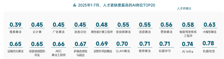 【TechWeb】9月16日消息,脉脉最新发布的《2025年AI人才流动报告》显示,2025年1-7月,AI领域人才市场供需两旺,AI新发岗位量同比增长超10倍,简历投递量也暴涨了11倍。“算法”相关人才持续紧缺,其中“搜索算法”人才紧缺度最高,5岗争2人。非技术岗数量同比增长7.7倍。AI人才争夺战延伸至校招,脉脉上过半应届生岗位月薪超5万。