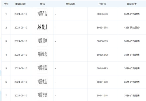 随着华为鸿蒙操作系统用户群体的增多,华为鸿蒙系列的商标也在增加。