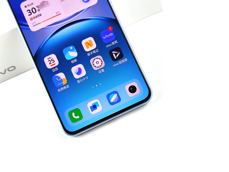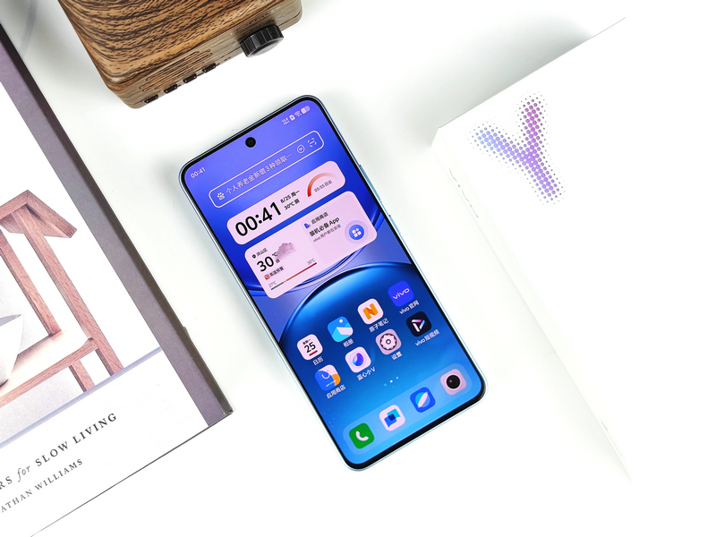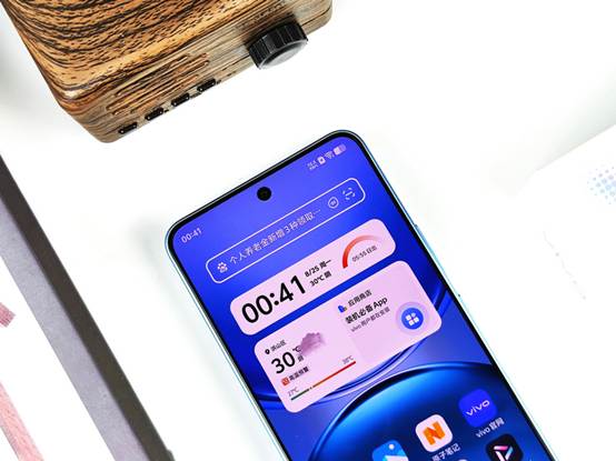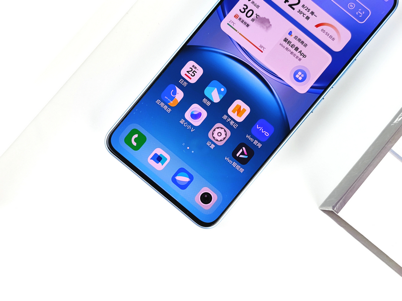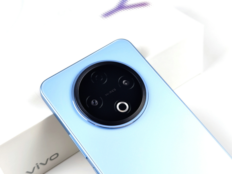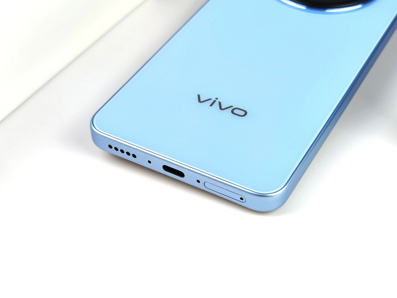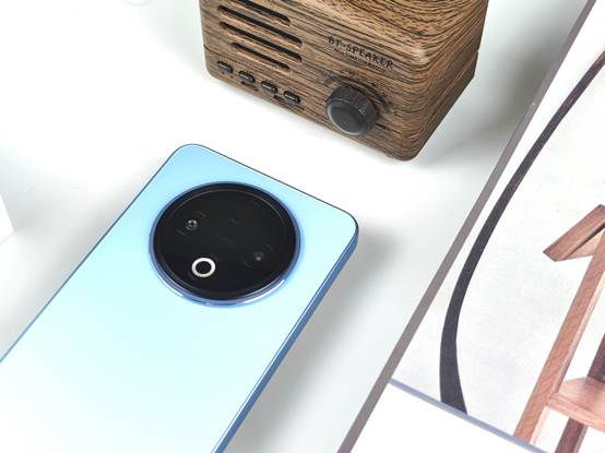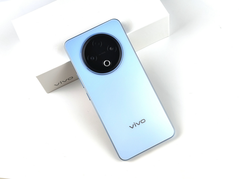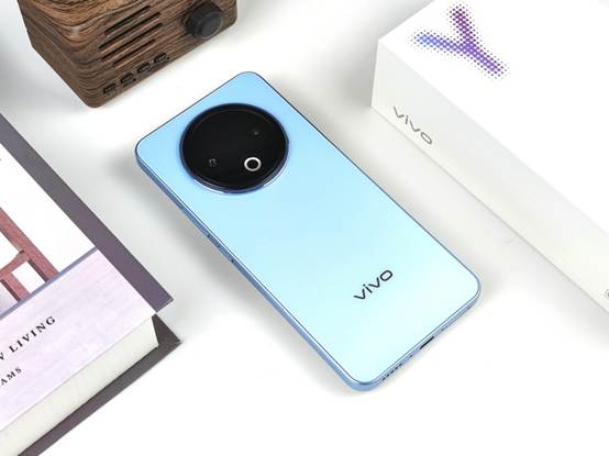 机身背部,vivo Y500的设计简洁而优雅,提供了冰川蓝、龙晶紫和玄武黑三种时尚配色,笔者此次拿到的是其中的冰川蓝配色版本。这款配色如同冰雪在岁月轮转中形成的冰川,阳光折射下流射出淡淡的蓝色,给人一种清新自然的感觉。
