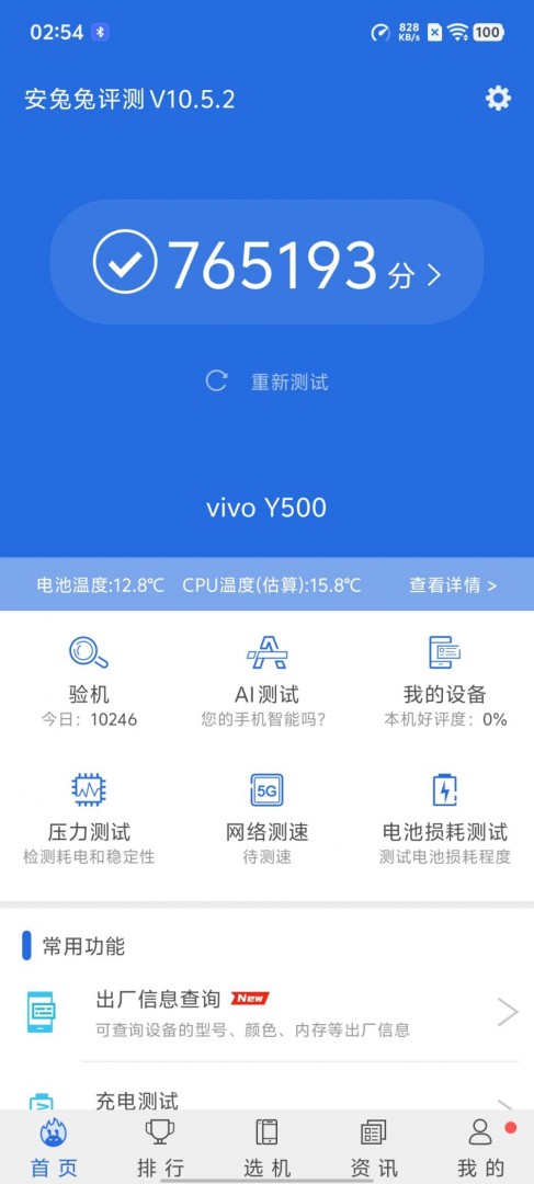 在安兔兔V10版本的测试中,vivo Y500的跑分达到了76万分,这一成绩在同价位段产品中表现非常出色,能够满足用户对高性能的基本需求。