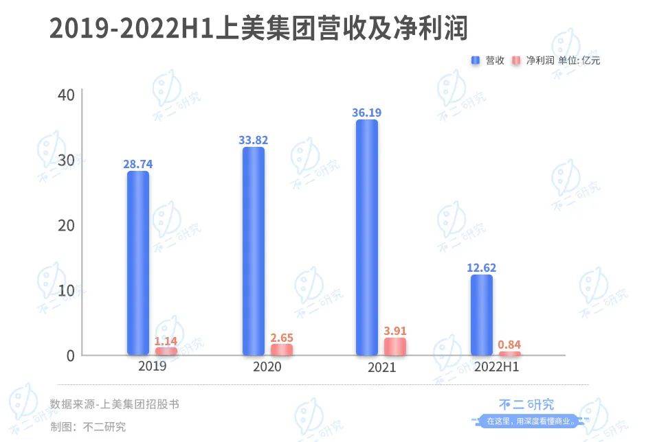 「不二研究」据上美集团新版招股书中发现:2022上半年,其营收为12.62亿元,同比减少31.08%;同期,经调整后的净利润为0.84亿元,同比减少59.15%。