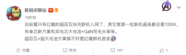 红魔7游戏手机快充规格曝光:或首发超百瓦+超大电池方案快讯