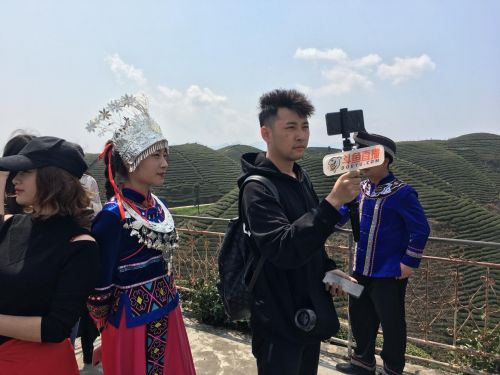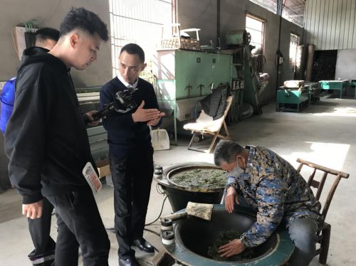 (斗鱼主播钱小佳正在观看“炒茶”工艺)