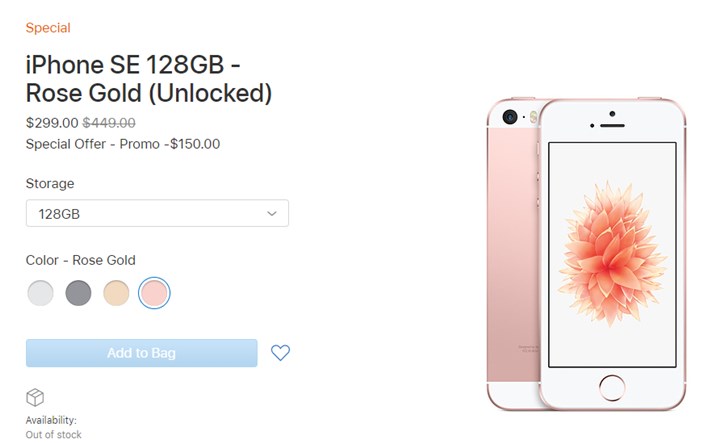 不过,苹果美区官网上架了iPhone SE特别版——32GB和128GB版本,均为无锁版。售价方面,32GB版本售价249美元,128GB版本售价299美元。